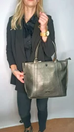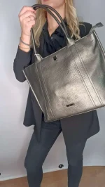 Τσαντά ωμου γκρι μεταλιζε μεγαλο μεγεθος.