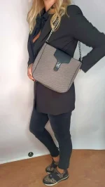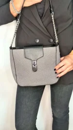 Τσαντά ωμου γκρι με αλυσίδα μεσαίο μέγεθος