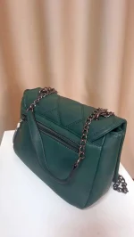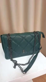 Τσαντά ωμου καπιτονέ πράσινη με αλυσίδα.