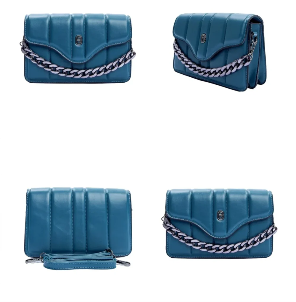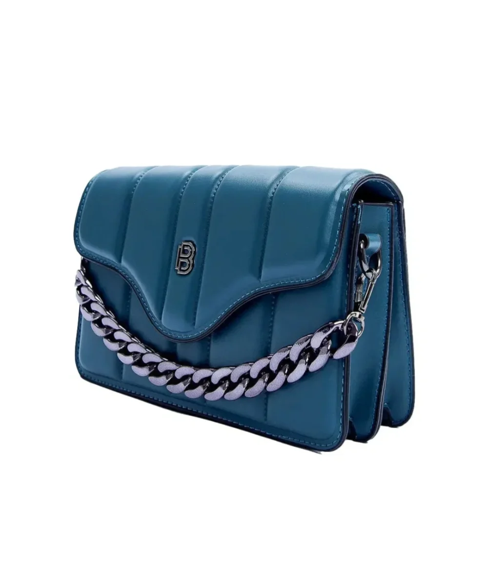 Τσαντα χειρος με διακοσμητικη αλυσιδα πετρολ